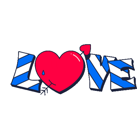 Animated sticker of the word 'LOVE' with a red heart, pierced by an arrow, shedding blue droplets.