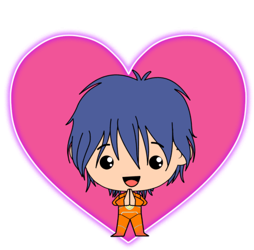 Helia, from Winx Club, stands happily with hands clasped in front of a glowing pink heart, sending love.