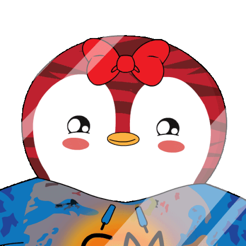 A cute Pudgy Penguin with a red bow on its head is crying, expressing deep emotions of love or sadness.