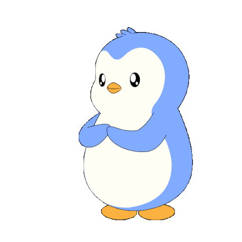 a blue and white penguin holding a pink heart in its beak