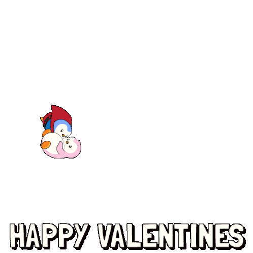a couple of penguins hugging each other with the words happy valentines above them