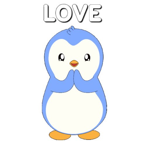 a penguin with hearts in its eyes and the word love