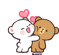 Adorable white and brown bears share a comforting hug with floating hearts, perfect for expressing love and care.