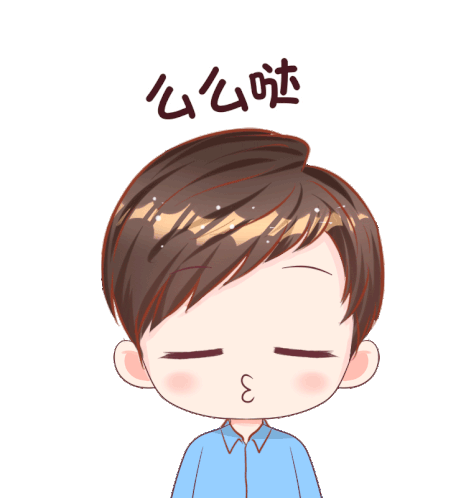 A cute cartoon boy blows a kiss with puckered lips, forming a heart with his hands, surrounded by floating red hearts.