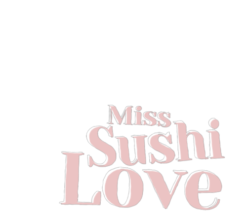 An animated sticker featuring the text 'Miss Sushi Love' followed by a cute pink heart, perfect for expressing affection for sushi.