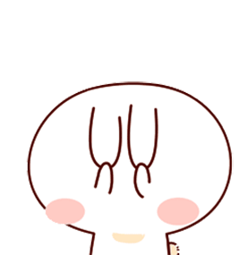 An adorable white cartoon bunny character expresses excitement and happiness with a wide smile.