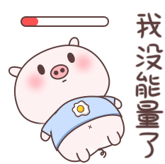 A cute cartoon pig sticker showing low energy, sighing, and the Chinese text "I'm out of energy."