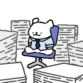 a cartoon of a teddy bear sitting in an office chair surrounded by stacks of papers .