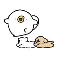 A cute, white, blob-like creature with one eye and two small, cartoonish dogs walking together.