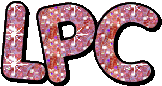 The acronym 'LPC' is displayed in sparkling pink glitter letters, creating a vibrant and eye-catching animated sticker.