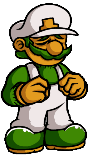 Lucas Everett's pixel art sticker of a creepy Luigi from Mario '85 and Mario's Monday Night Massacre, featuring glowing red eyes.