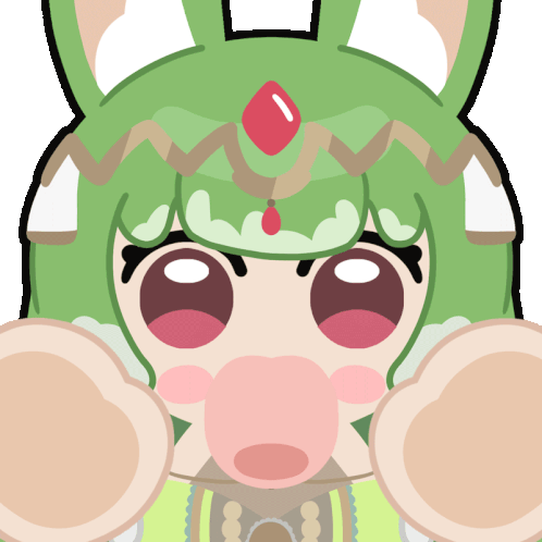 a cartoon of a girl with green hair and a red jewel on her head