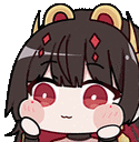 Luciaplume Luciacheeks, a character from Punishing Gray Raven, with red eyes and a bow tie.