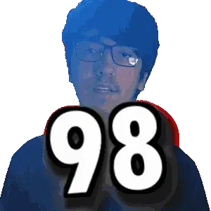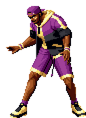 Lucky Glauber from King of Fighters in a vibrant pixel art sticker, striking a cool pose with a wide smile.