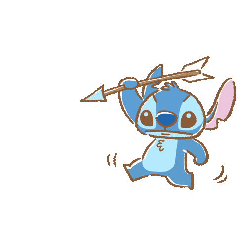 Stitch, the mischievous alien, shoots an arrow, hits a lucky star, and celebrates his good fortune.