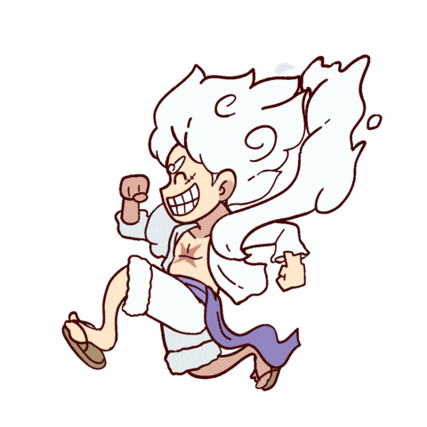 Monkey D. Luffy in his powerful Gear 5 form from One Piece, running with a joyful, mischievous grin.