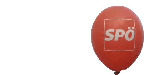 A vibrant red balloon featuring the 'SPÖ' logo, commonly associated with Austrian political events and celebrations.