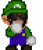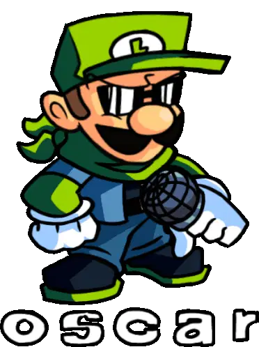 Luigi, the iconic pixel art character, dances with cool sunglasses and his signature green hat and blue overalls.