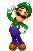 Pixel art of Luigi from Mario & Luigi: Dream Team in a thoughtful pose, with his hand on his chin.