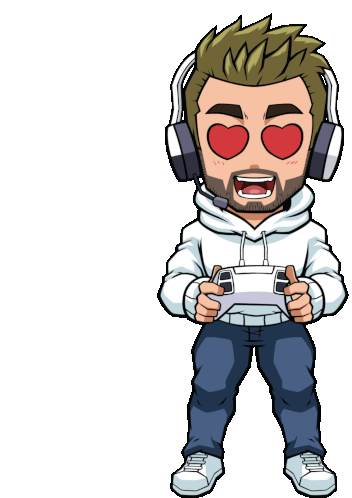 Luka Doncic as an excited gamer, wearing headphones and heart-shaped glasses, holding a controller.