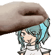 Lumina, the blue-haired cartoon girl, with her cute pet Lumi, looking surprised or thoughtful.