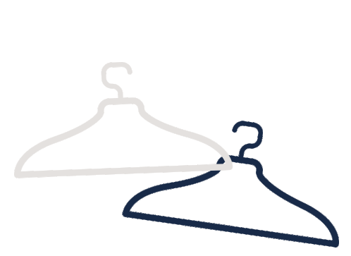 Two stylish outline hangers, one light and one dark, subtly animate. Features the inspiring phrase 'Be Yourself Inside Out' by Lumiranda.