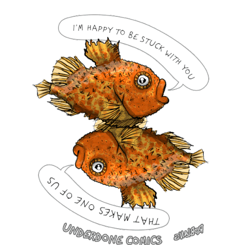 Two lumpsucker fish in a comic, one happy to be stuck, the other not so much. A relatable quarantine joke.