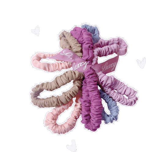 A vibrant collection of Luxcy Tracylim hair scrunchies in various pastel shades, perfect for adding style.