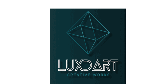 Animated sticker featuring the Luxdart logo, then silhouettes of Rick and Morty, and finally the iconic Batman logo.