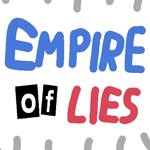 A menacing figure holds a 'LIES' sign, symbolizing deception and the 'Empire of Lies'.