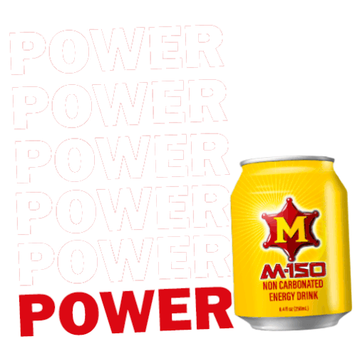 An M-150 USA energy drink can with dynamic 'POWER' text animation, perfect for boosting energy.