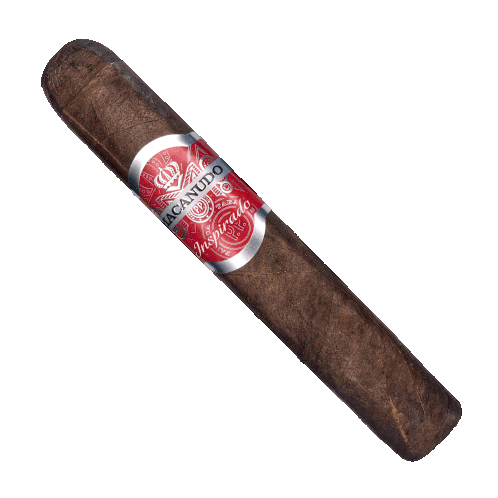 A detailed view of a Macanudo cigar, featuring its distinctive dark brown wrapper and a red and silver band.