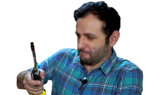 Ibere Thenorio holds a torch with a blue flame, making a disgusted or uncomfortable face, possibly reacting to heat or smell.
