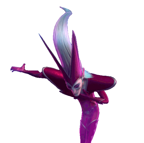 a cartoon character in a purple suit has a very long white hair