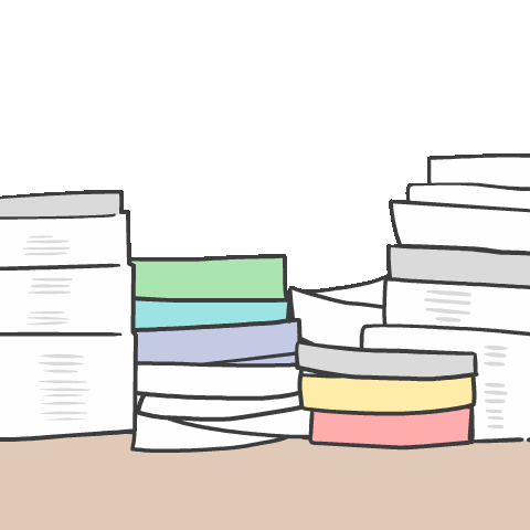 Machiko Rabbit is buried under a mountain of papers, signaling 'Wait, I'll reply' as she struggles with her workload.