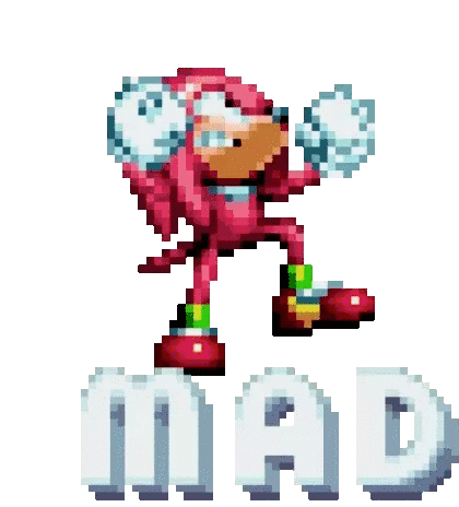 Knuckles the Echidna from Sonic Mania, depicted in pixel art, stands angrily on the word 'MAD' in this animated sticker.