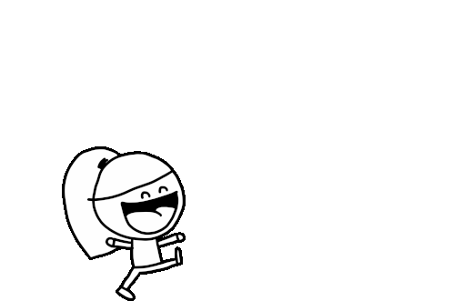 A cheerful Madebyminka character joyfully jumps and skips, expressing pure happiness and energy in this Anderhalvemeternormaal sticker.