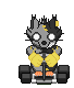 Animated pixel art sticker featuring Madratdead's Mad Rat character sitting on a kart.