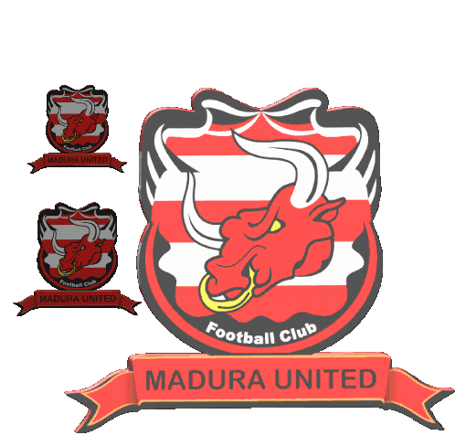 Animated 3D logo of Madura United FC, featuring the Laskar Sapee Kerap bull mascot and club name.