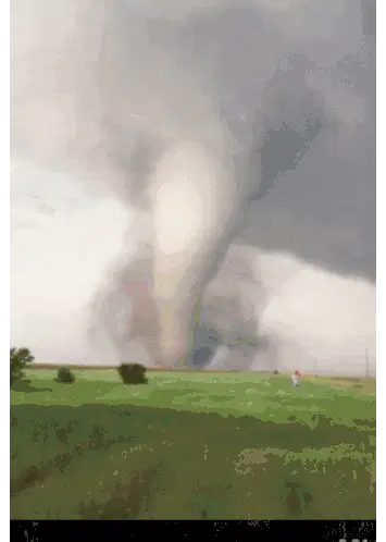 An abstract, blurry, pixelated gray and yellow image resembling a ghostly maelstrom or tornado, with a spooky, ethereal feel.