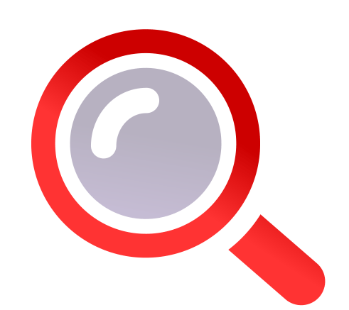 A vibrant red and grey magnifying glass icon, commonly used for searching or zooming functions.
