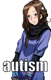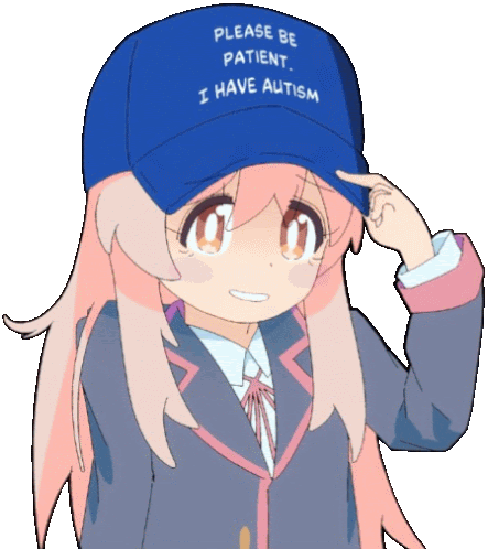 a cartoon girl wearing a blue hat that says please be patient i have autism