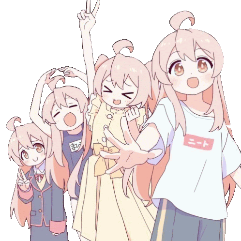 a drawing of three anime girls with one wearing a shirt that says ' n-t ' on it