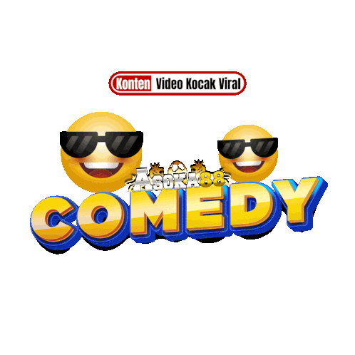 two smiley faces wearing sunglasses are behind the word comedy