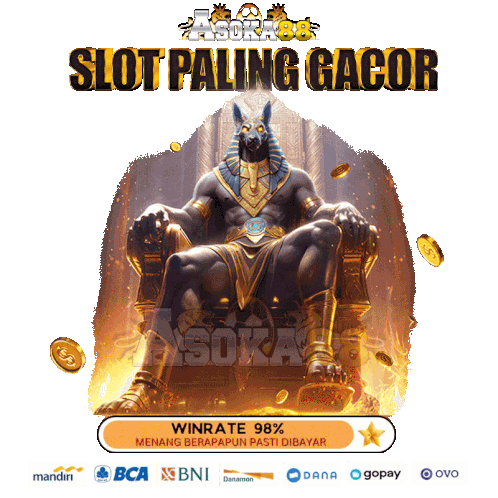 an advertisement for slot paling gacor shows an anubis sitting in a throne