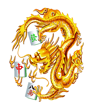 a golden dragon is surrounded by mahjong tiles with chinese characters