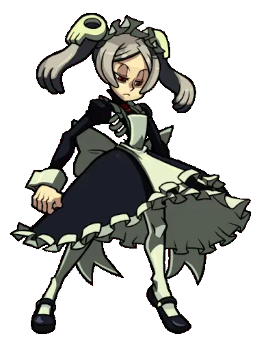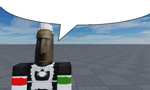 a statue in a maid outfit has a speech bubble above its head