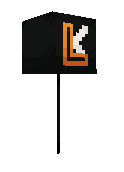 a black cube with an orange l on it is sitting on a stick .