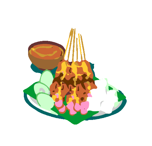 A delicious plate of satay with peanut sauce, cucumber, and rice cakes, perfect for Hari Raya celebrations.