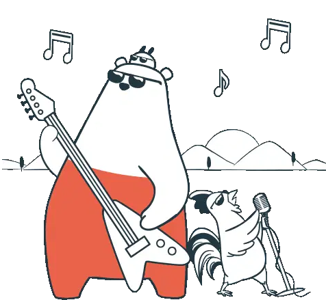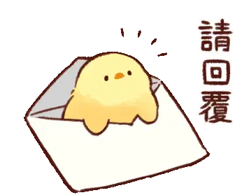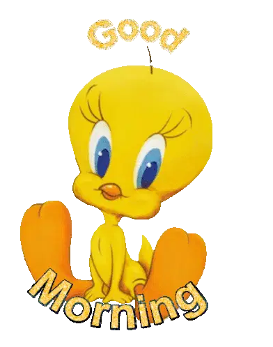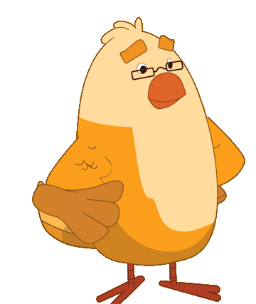 An animated sticker of Makarios, a yellow and orange cartoon bird character wearing glasses, blinking and moving slightly.